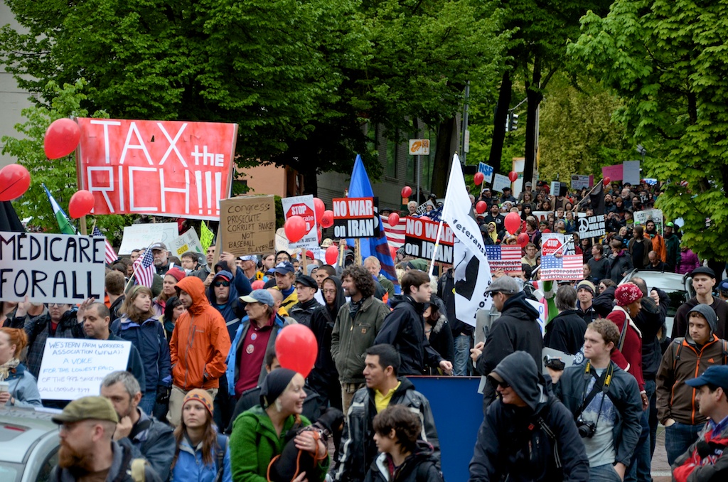 Across the globe, May Day 2012 was filled with protests and celebrations, and overshadowed by police violence. This photo set is from May Day events in Portland, OR. The first 4 photos are from the High School Student Strike March, the next 16 are from the General Strike March and the last 18 are from the annual May Day March organized in solidarity with International Workers Day. If you would like to see my complete set of photos from the days events please visit my flickr site at: www.flickr.com/photos/lauriel-arwen/sets/