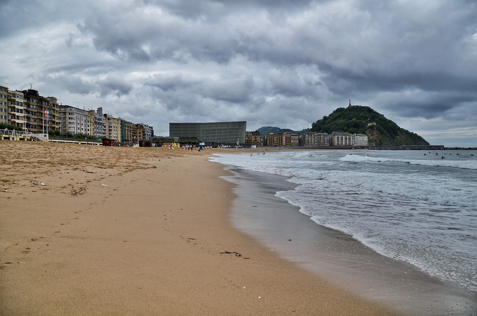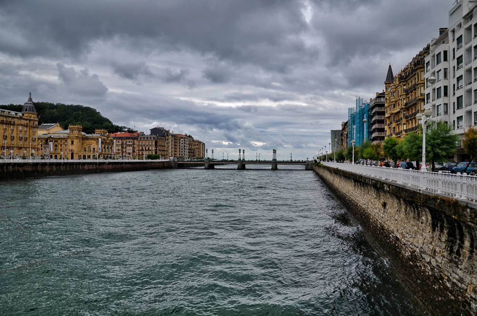 I have been wanting to go to San Sebastian ever since I heard about its reputation for amazing food over 6 years ago. Unfortunately, I think I picked the wrong day to visit (or so I thought at first)…today as I came through the Northern Spanish mountains by bus it begin to rain, and rain, and rain. By the time I arrived in town, the streets were empty, the shoppes all closed (it’s also unfortunately a Sunday), and the rain continued to fall. To be honest it was a nice reprieve from the heat of Madrid, but this supposedly lively beach town was, as far as I could tell, all indoors.