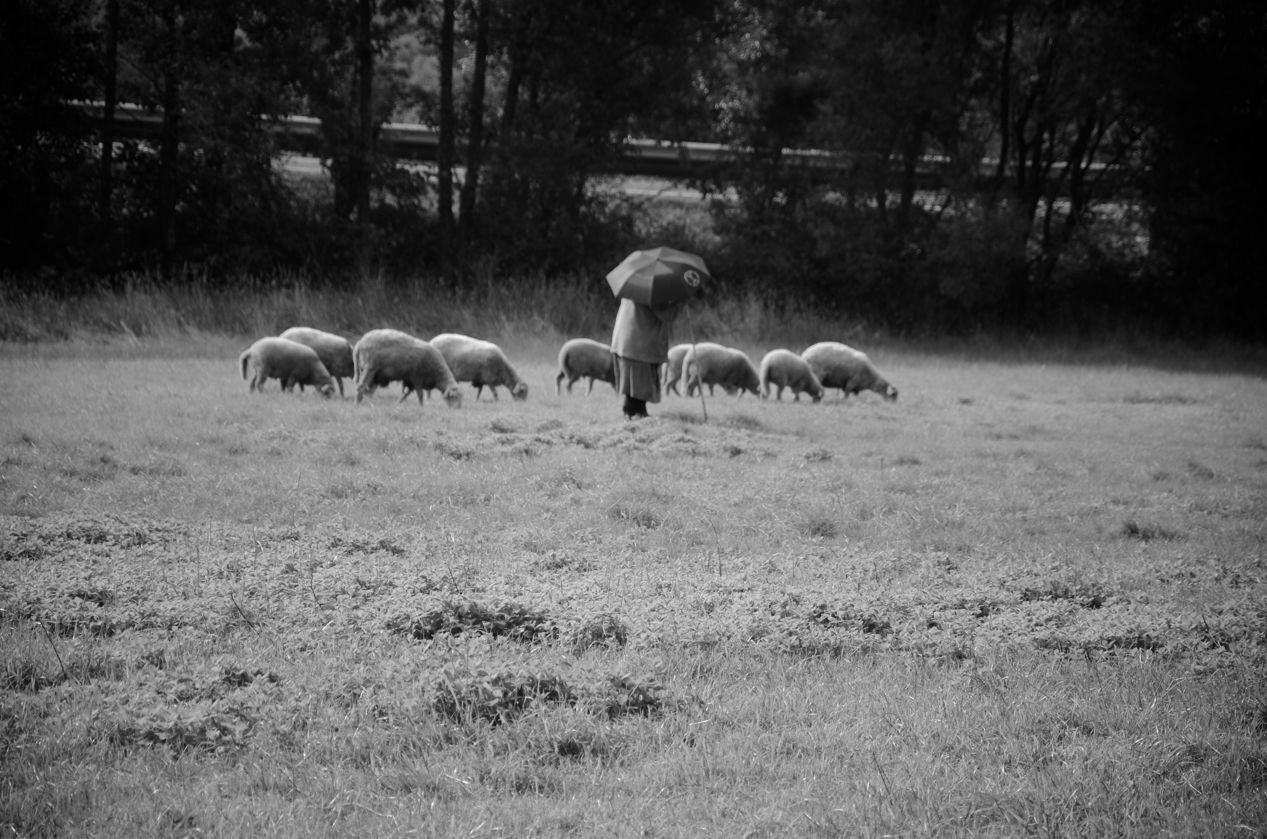 Looks like the still from a silent film. I can just imagine the stilted cinema movements of the umbrella holder. Beautiful.
