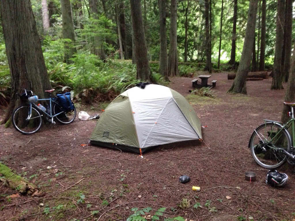 Today we traded in bike paths and trains for ferries, highways and back roads. We rode from Kingston, WA to Port Townsend, WA for a total of 32 miles. Overall, it was a wonderful day although a bit challenging. The terrain was hilly and the shoulder often disappeared into the moss. In the end, we ended up at Ft. Townsend State park in a beautiful hiker/biker campsite all to ourselves!
