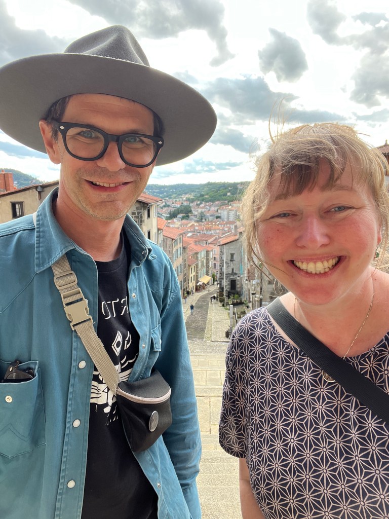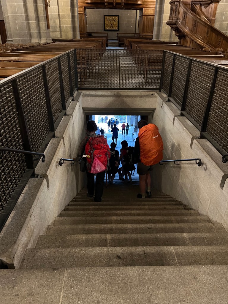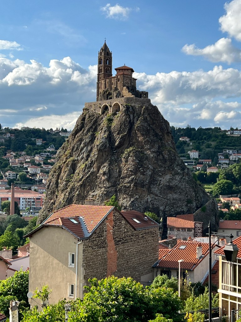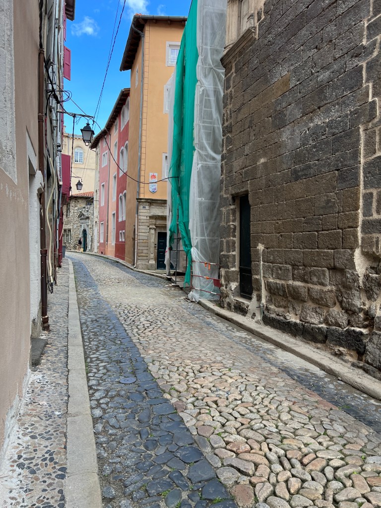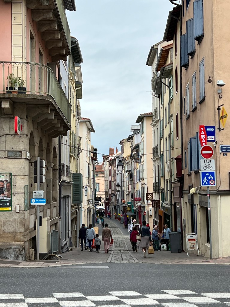 Le Puy was stunning; a town built on ancient volcanic hills and spires. The Via Podiensis begins at the Cathedral, which sits atop the town and is accessed by walking up winding cobblestone streets and multiple sets of staircases. There is a daily morning mass for pilgrims that begins at 7am and includes a blessing for the journey ahead. I am not Catholic, but enjoyed the ritual and community aspect of the gathering. At the end of mass large metal gates in the floor open up and reveal a staircase leading out of the church to begin the walk. It’s dramatic and symbolic and an exciting start to the walk.