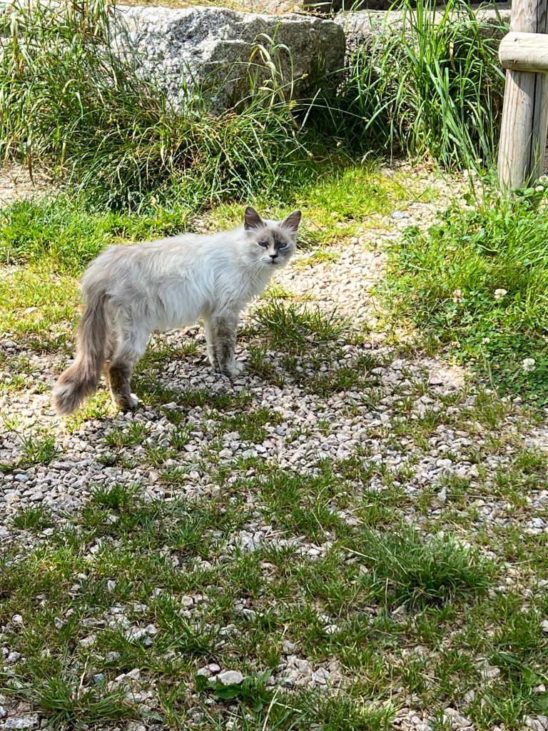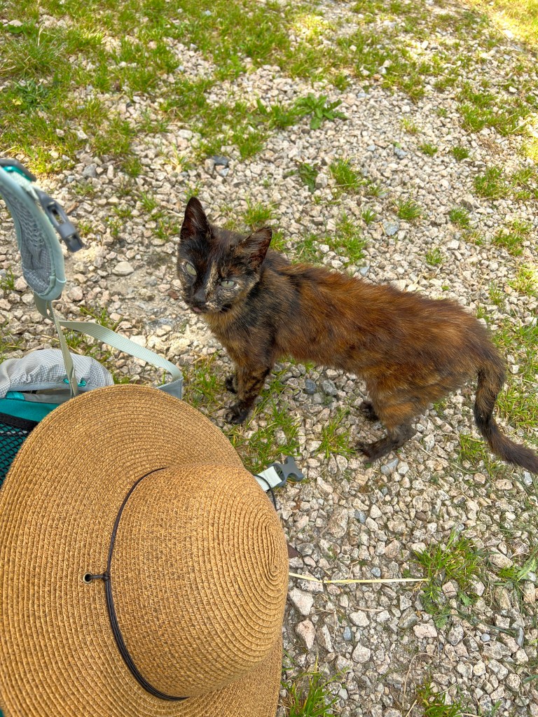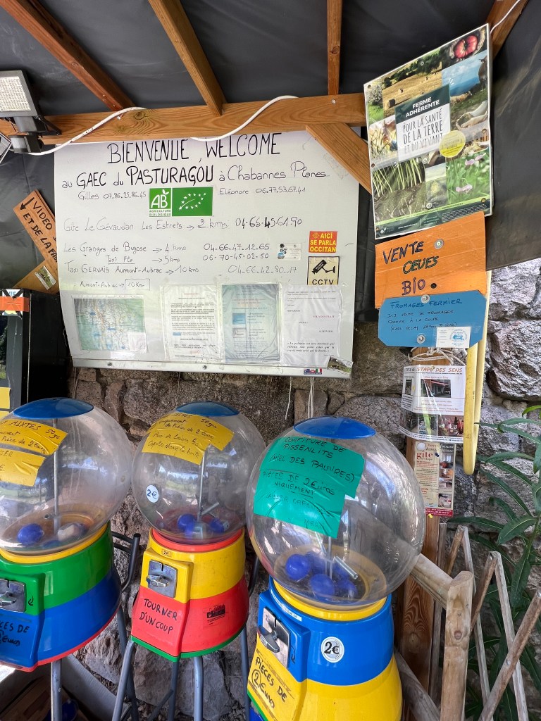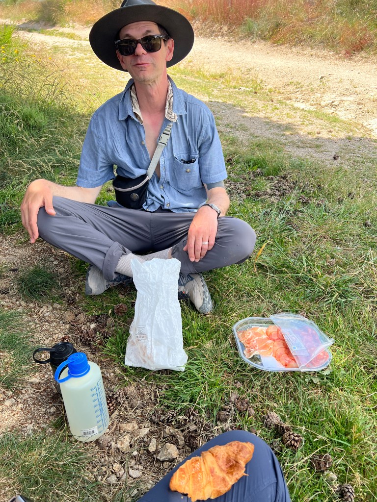 There were few amenities today along the trail and our rest stops included a place with a local soap vending machine—and many hungry farm cats—with the most beautiful eyes—, and the side of the trail where we happily ate croissants and Spanish ham.