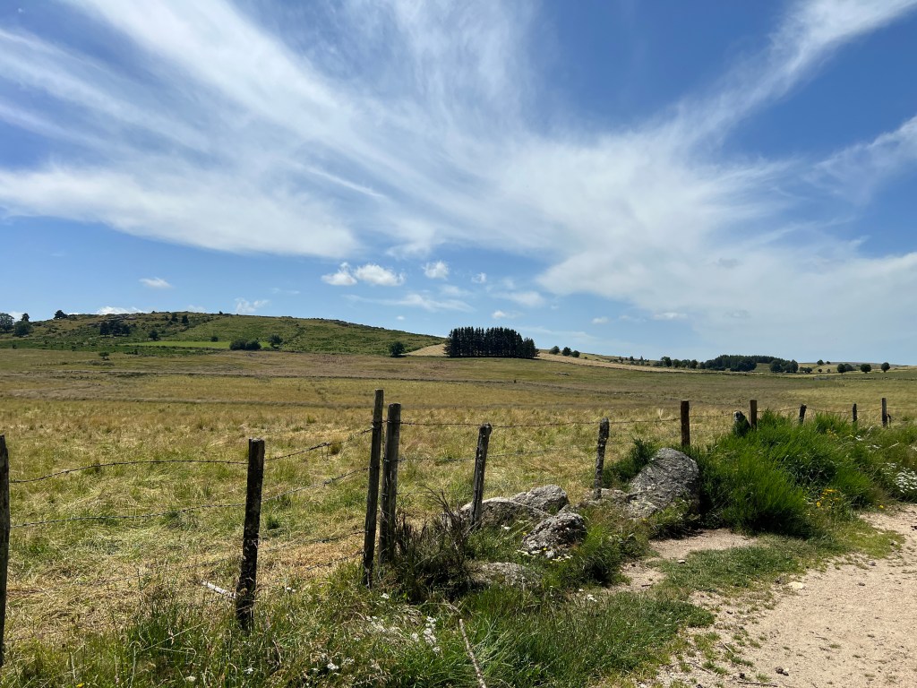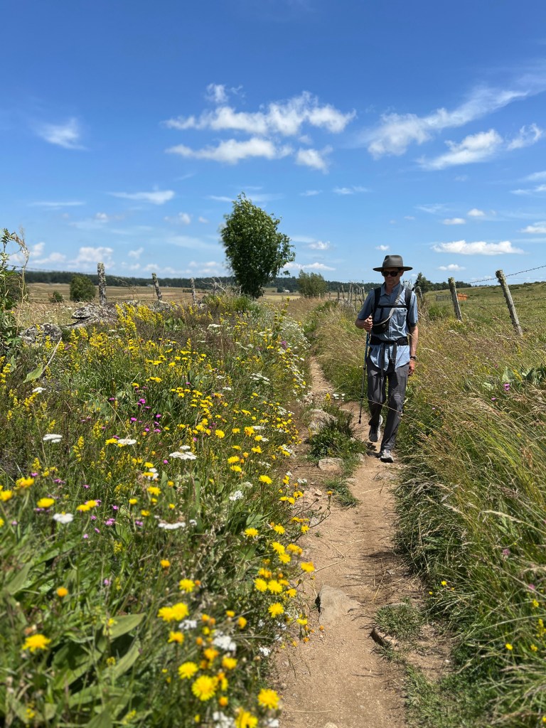 ~15 miles, across the Aubrac Plateau, rolling hills and very little shade