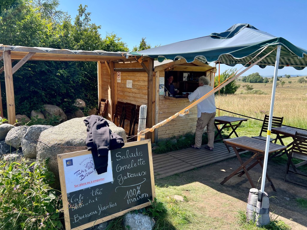 About 5 kilometers before our destination, and when I was not sure I could make it, we came across a little snack and beverage cart! It’s saved the day! And the owners were so sweet and helpful. If you find yourself walking here, I encourage you to have a quick stop and a refreshment at “Tatie Biscuits.” As is so often the case in France, you can never count on anything to be open, so finding this cart was a nice change from disappointment after disappointment, wishing for a cold beverage and some shade.