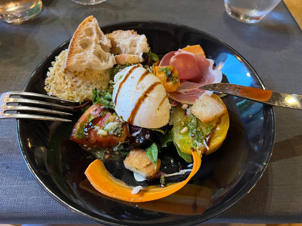 Dinner was incredible, as usual. We went out to eat at a very nice restaurant, La Puce à l’Oreille. August had duck bread and I ordered the fish of the day. They played Dolly Parton and we drank local wine. It was a perfect evening.