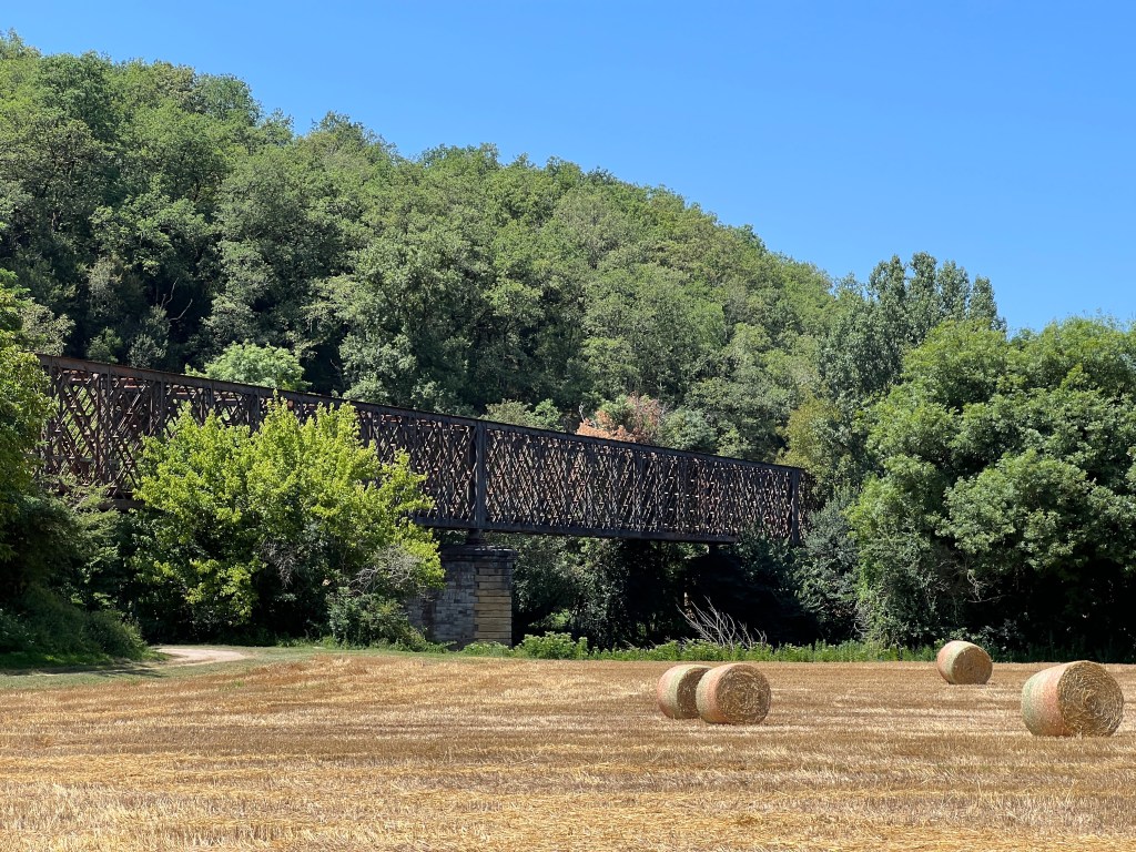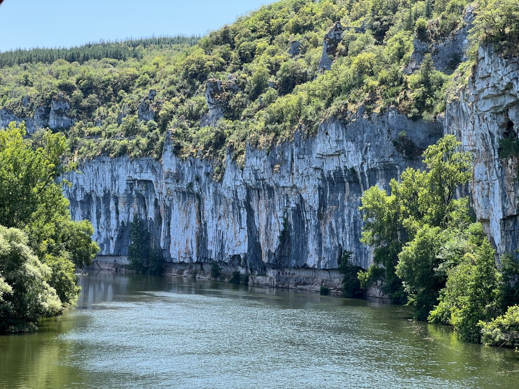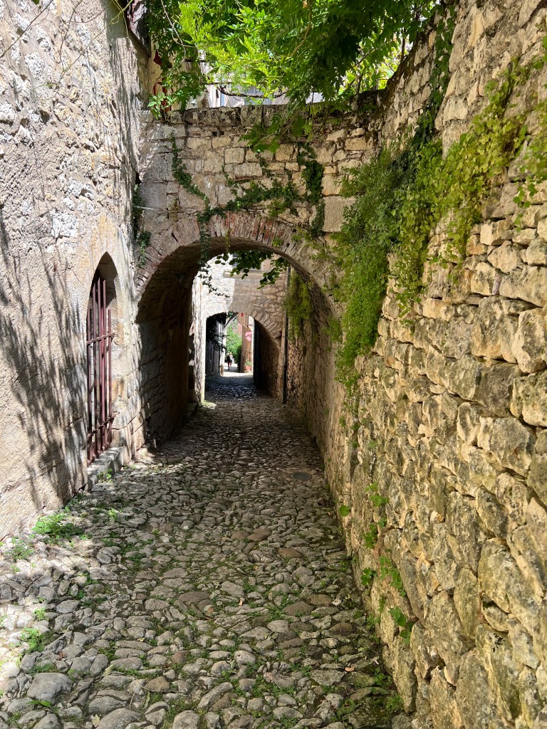 After leaving the museum we walked a challenging 7 more miles to Saint-Cirq-Lapopie, including climbing up and crossing an abandoned railroad bridge and walking the Chemin de Halage, a towpath that was carved into the limestone cliffs and then transformed into a canvass of stone art. The final climb to Saint-Cirq-Lapopie was 300 feet straight up the hillside, where we arrived dripping in sweat and out of breath to our incredible Chambre d’Hôte for the next two days. Saint-Cirq-Lapopie was voted Frances most beautiful village (of all the most beautiful villages) and was truly gorgeous. My favorite part is that cars are not allowed into the village, as the streets are too narrow, which always make a place more peaceful and welcoming. The village was filled with art and artists, which I will talk about more in tomorrow’s “rest day” post.