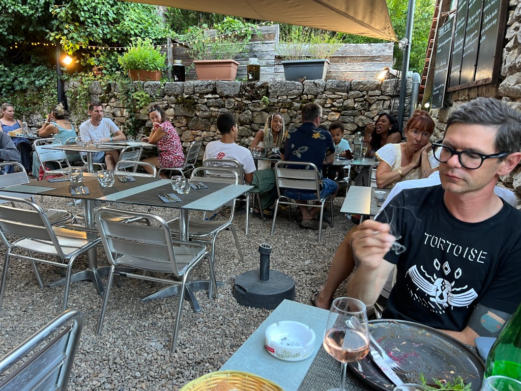 Dinner was at a fairly hip restaurant, Le Cantou, where we were put in a dark corner on the back terrace, with cheeky sparrows trying to steel our food, but still had an incredible meal.