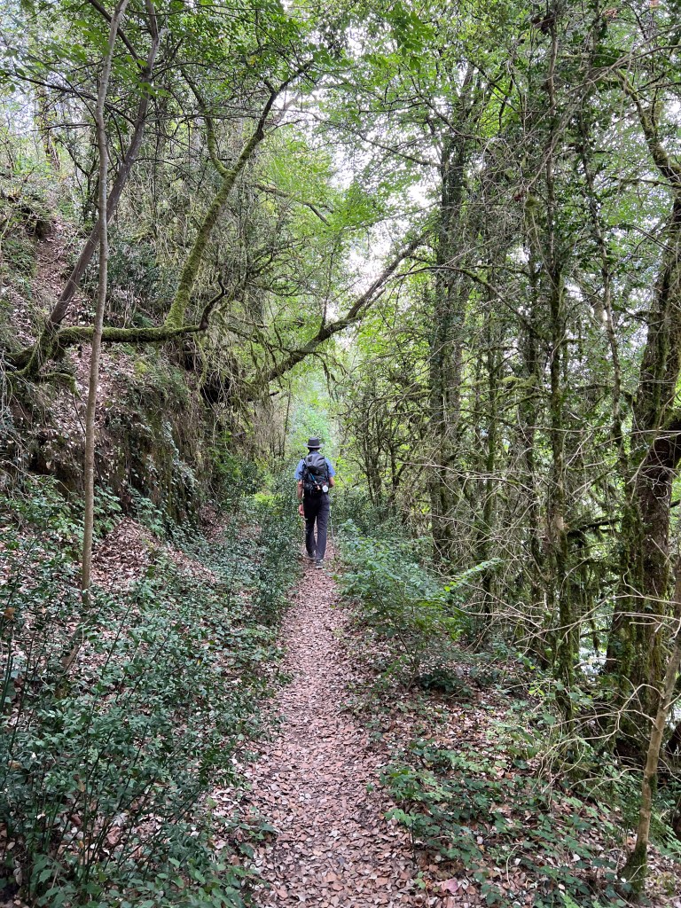 Today’s walk was fairly short and easy, except for an unfortunate shortcut we decided to take near the end of the day. We read that it would take off a few miles and a whole lot of elevation gain and loss, but was for the “adventurous.” Initially, the shortcut was fine, a scramble up a steep bank to an abandoned railroad bridge. But once across we had to navigate the path along the tracks, which was essentially overgrown blackberries and other thick brush. We walked through this tangle of thorns for about 10 minutes looking for a descent, which we eventually found, although a bit harrowing and unpleasant. We then ended up waking along a fairly busy road with no shoulder for about a mile and a half (forgot to take photos—focusing on not being smooshed by a car). At the end of the day it saved us a little time, but added a ton of stress. The saddest part of the shortcut was that the thick trail of thorns plucked my umbrella right out of the side of my pack without me realizing it and now she’s gone forever. She treated me so well on this journey and it was sad to lose her. Shortcuts are so rarely worth it. Oh well.