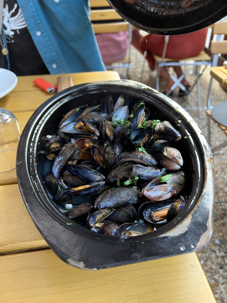 Dinner was a fun departure from the norm. The local bar in Saint-Géry does all you can eat Mussels and Fries every Friday night, which were delicious. There was also the cutest, sweetest bar dog that I hung out with and wanted to take home.