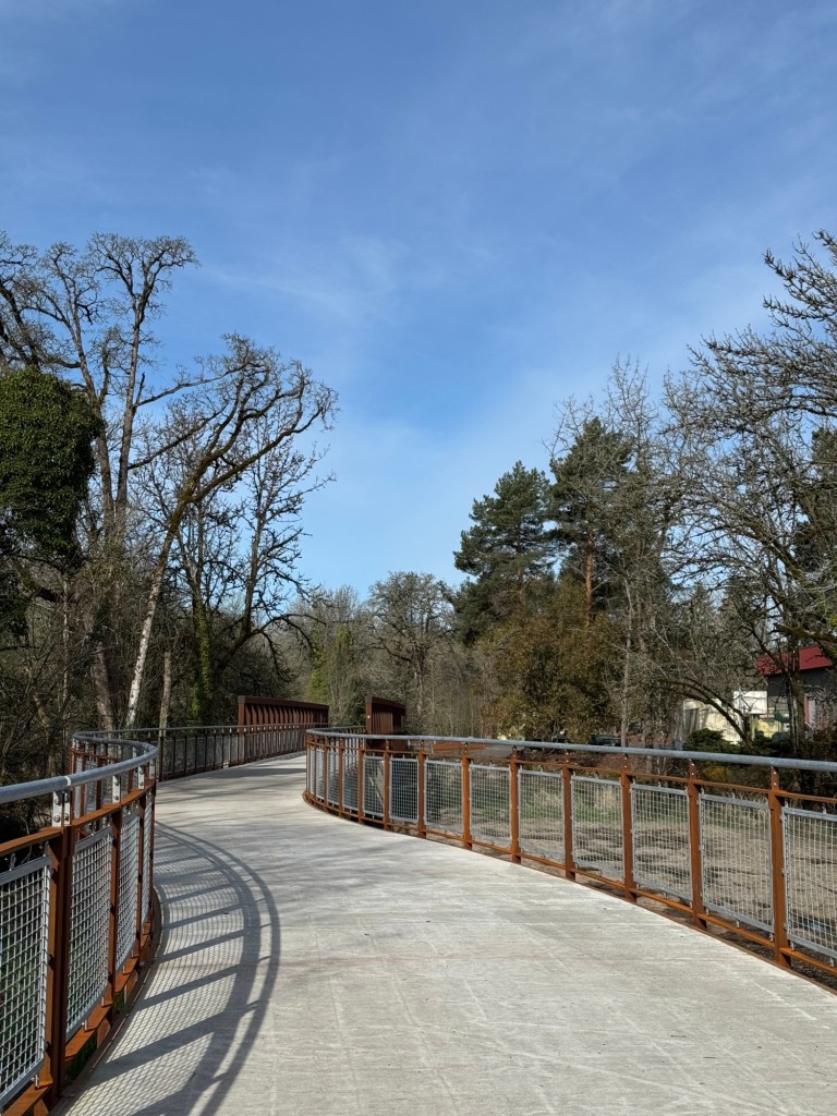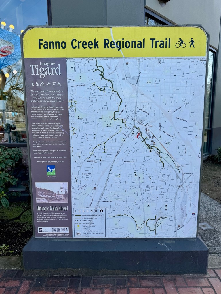 Today I walked a short 1.8 miles from Dirksen Nature Park to the Tigard Public Library on the newly expanded Fanno Creek Trail. It was an unseasonably warm day, with highs reaching the upper 70s by early afternoon.